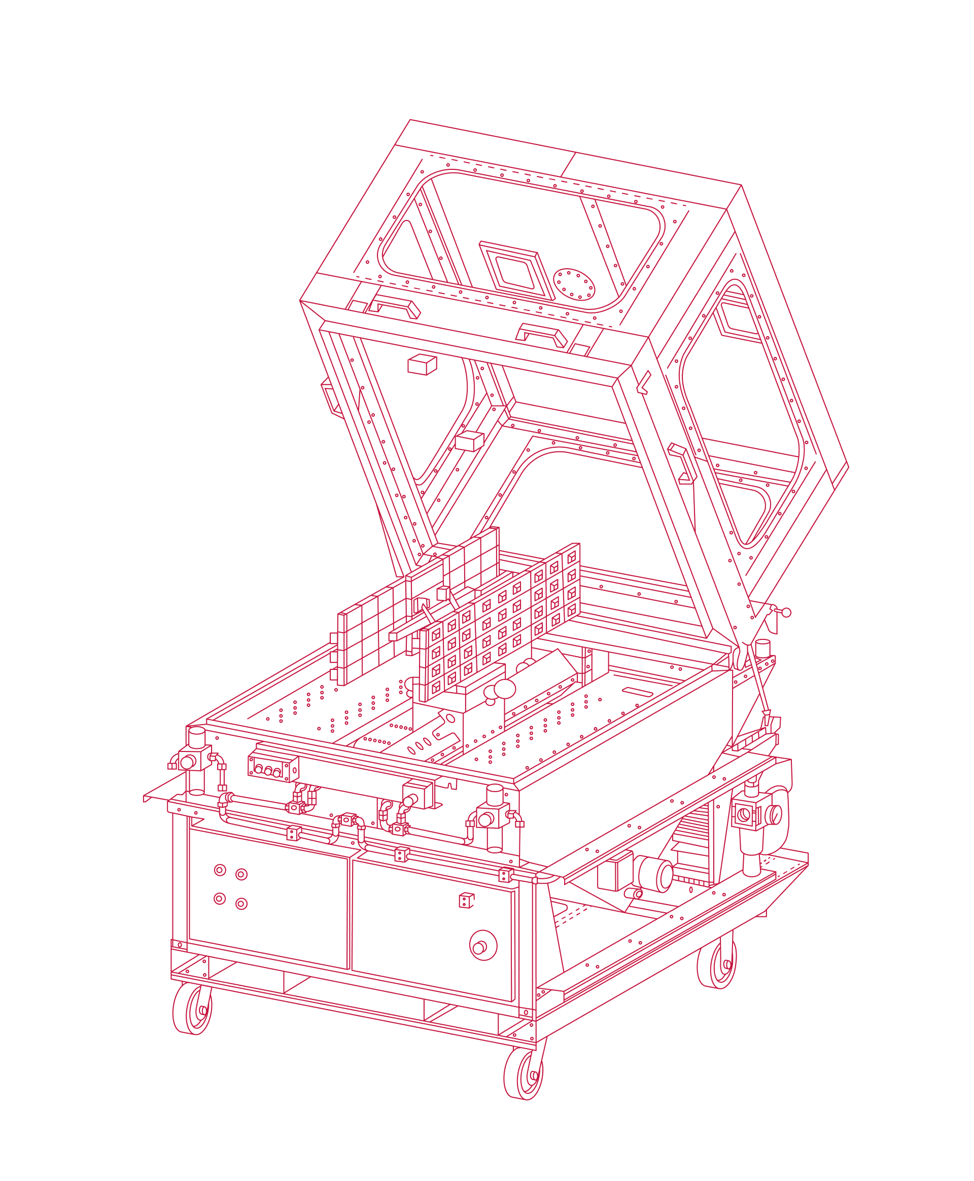 Zur Reinigung von mittelgroßen Sprühwerkzeugen, sind diese mobilen Anlagen mit einer schwenkbaren Haube mit integrierten allseitigen Sichtfenstern ausgestattet.